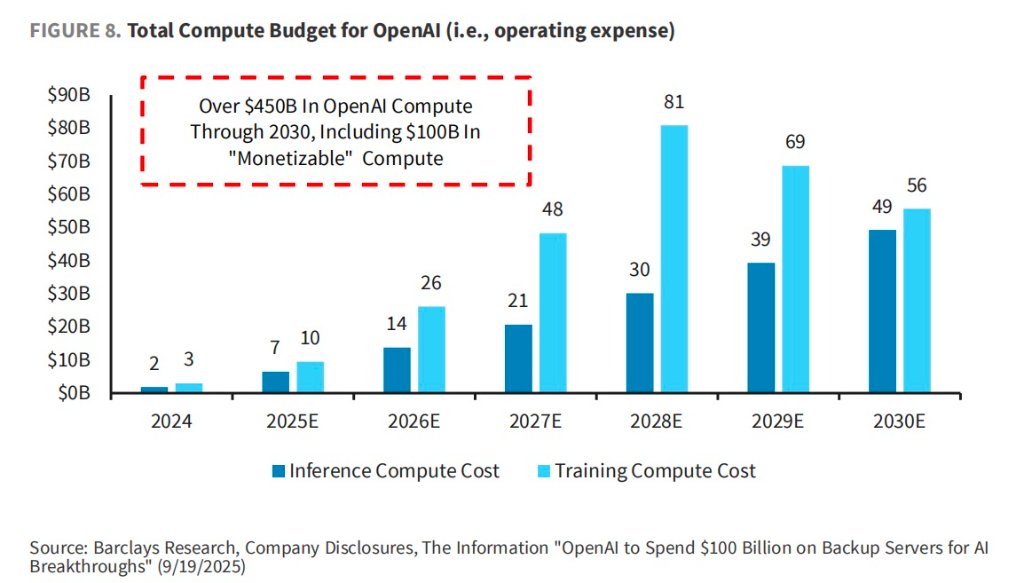 对资本市场而言,这一趋势意味着互联网巨头与超大规模云服务商将继续维持高强度的资本投入,半导体需求将保持旺盛。巴克莱预计,到2028年OpenAI的计算支出将达到约1100亿美元的峰值水平,届时技术突破很可能引发新一轮算力需求激增。